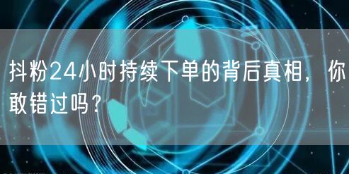 二、什么是抖粉24小时持续下单?
