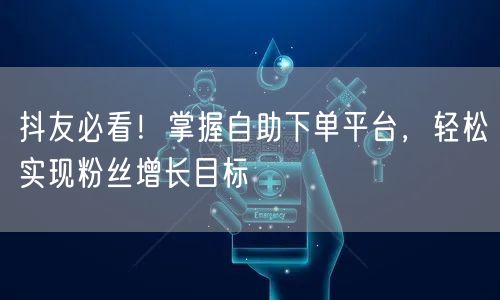 通过掌握自助下单平台技巧,结合其他推广方式,抖友们可以轻松实现粉丝增长目标。在抖音这个竞争激烈的社交平台上,不断学习和改进,保持竞争力,才能在众多用户中脱颖而出。希望本文的内容对抖友们有所帮助,让你在抖音上实现自己的增长目标。