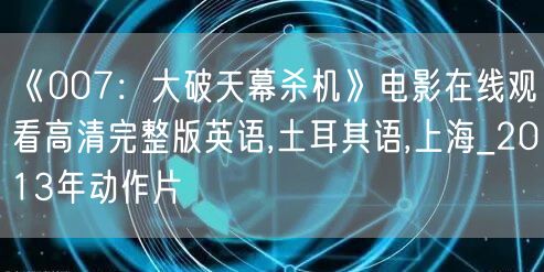 《007:大破天幕杀机》电影在线观看高清完整版英语,土耳其语,上海_2013年动作片