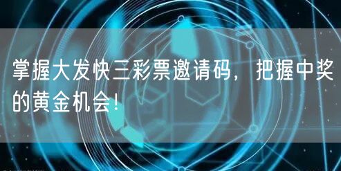 你是否曾经为了大发快三彩票的中奖机会而烦恼?是否一直在寻找一个能够带你走向成功的黄金机会?今天,我们将为你揭示一个秘密——掌握大发快三彩票邀请码,把握中奖的黄金机会!